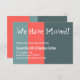 In this fun piece, a playful font was used to render the words "We Have Moved!" and "Stay in Touch!" on the back. Your details will appear in a complementary sans-serif font. I've added colour blocks and a grey-green and salmon colour palette to the backgrounds for unique fun. All colours and fonts can be changed if you prefer.