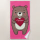 Quirky, Whimsical Bear With Heart Drawing Custom Beach Towel