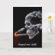 A wispy skull made from smoke emerges, gripping a lit cigarette between its teeth for someone who has quit smoking.