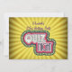 Quiz night trivia party birthday invitation. With big bold typography surrounded by dressing room lights. The background is a yellow sunburst pattern.