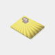 Quiz night trivia party sticky notes. With big bold typography surrounded by dressing room lights. The background is a yellow sunburst pattern.