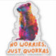 A quokka sticker typically features this small, adorable marsupial with a round face, short ears, and a friendly expression that seems to smile. Known for their docile and curious nature, quokkas are often depicted in a relaxed pose, either sitting or standing, with their big, bright eyes and bushy tail. The design may highlight the quokka's thick, brown fur and its charming, approachable demeanour. Whether realistic or stylised, the sticker captures the quokka’s endearing qualities, making it perfect for animal lovers, wildlife enthusiasts, or anyone who admires this cheerful and photogenic Australian native.