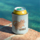 A cute illustration of a cartoon quoll. This is a marsupial found in Australia. There is the southern eastern and the western quoll, among other species. The cartoon animal has white spots on its back. It is drawn it is resting its hands on the word quoll.