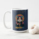 Available in two stylish background options—cream for a soft, cosy morning vibe or navy for a bold, vibrant statement—this mug is as versatile as it is fun. The intricate illustration of a Renaissance figure enjoying a cup of coffee adds a touch of elegance, while the warm gold and muted tones create a timeless aesthetic.