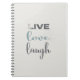 Live Love Laugh Typography quote on Notebook from Simple Living. Stylish, simple lettering on light grey background.