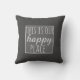 This accent quote pillow has text this is our happy place on grey and white in a modern design for home decor.
