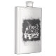The product is a good size and came exactly as it was pictured. The lid is not attached to the flask, which could be dangerous on drunken nights... The print came out surprisingly well and looks very sharp. Would definitely recommend.