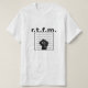 A white shirt with the well known acronym r.t.f.m. printed in a black font with a drawing of a document and a fist.