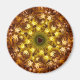 Red, orange, yellow and gold coloured fractal design that looks like the sun.