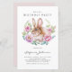 This charming birthday invitation features a hand-painted watercolor rabbit nestled inside a delicate pink and lilac flower wreath. The soft pastel colors and whimsical design make it the perfect invite for a spring or garden-themed birthday party. It adds a touch of sweetness to any celebration, especially for kids or animal lovers. Customize this adorable invite to suit your event and make it even more special for your guests.