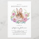 Rabbit and Pink Flowers Birthday Party Invitation
