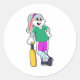 Rabbit at Cricket with Cricket bat Classic Round Sticker