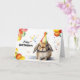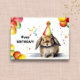 This delightful rabbit birthday card, the perfect way to celebrate a special occasion with an adorable twist! This charming card features a captivating watercolor illustration of a Mini Lop Rabbit wearing a cheerful party hat and surrounded by vibrant balloons. It's an absolute must-have for anyone who adores these loveable creatures and wants to add a touch of cuteness to their birthday wishes.