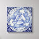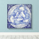 Rabbit Hare Bird Tile Medallion Art Blue & White Canvas Print