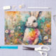 A beautiful white rabbit in a colourful wildflower meadow AI generated art perfect for your Decoupage projects