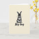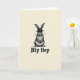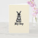 Designed with a pale cream background, the card keeps the focus on a single rabbit 🐰 standing centered and facing forward. The rabbit is drawn in shades of grey and black, with finely detailed fur that feels soft to the eye and gives it a gentle, companionable presence. Tall ears rise up to frame a small dark brimmed hat, adding a dressed-up touch like it’s ready to meet a friend for a spring stroll 🌷. Its steady gaze and fine whiskers create a quiet, friendly connection, as if it’s pausing to be noticed and admired. Beneath the rabbit, the words “Hip Hop” sit near the lower portion of the front in thick, slightly worn lettering that stands out in dark ink. The contrast between the refined little hat and the casual phrase adds a light, teasing energy, like an inside joke shared between close pals. The composition remains simple and open, with plenty of cream space around the central figure and the dark text anchoring the bottom.