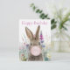 Rabbit Blowing Pink Bubble gum with pastel pink background.