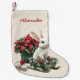 Rabbit Poinsettia Custom Name Small Christmas Stocking