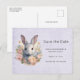 Rabbit Surrounded by Pastel Flowers Cute Announcement Postcard