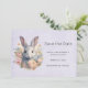 Rabbit Surrounded by Pastel Flowers Cute Save The Date