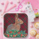 Rabbit with Holly Berries and Plaid Paper Plate