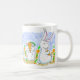 A cute illustration of two happy white rabbits munching on carrots in a field. The watercolor-like background makes this picture look like it belongs on the cover of a children's book. This mug is customisable.