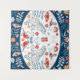 Blue background, rabbits, leaves, and flowers play. Folk art's beauty shines bright.
