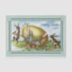 Rabbits Hauling a Large Gold Easter Egg Flowers Tissue Paper