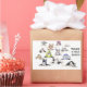 13 Rabbits are popping out of their holes. Text reads "Thanks a HOLE bunch". Rabbits are done in watercolor and pen and ink in green, blue, brown, orange, pink, grey, black, and white. (You can personalise text and background colour, just hit the customise it button)