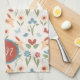 A kitchen towel with a unique and enchanting illustration by Mango Moon Studio that seamlessly blends the timeless charm of Scandinavian folk art which inspired the pattern with the practicality of a kitchen essential. This delightful towel features whimsical flowers, complete with cute rabbits, birds, and fluttering butterflies in a harmonious palette of red, blue, and green. With a space to add your monogram.