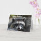This juvenile raccoon bandit looks up from his lunch, mouth still open, to wish you happy birthday. The photograph shows a close-up of his face snuggled between the furry gray sides of his mother and sibling. The little dark eyes twinkle out at you from the black mask that runs across his face, with white whiskers, like a cat's, standing out against the black. White stripes show above and below the eyes, and the black nose starts a vertical black stripe running up the forehead to the black head. His little black ears are outlined in white. One little dark forepaw, just like a hand, is at his mouth ready to pop in a bit of cat food. Against the blurred background are written the words, "Happy Birthday!" in white script. He and his family of Mom and two siblings have come for a hand-out at my sister's house in Ocean Shores, WA. Copyright Gail Storrs 2011.