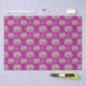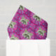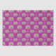 This tissue paper features grey raccoons on a background of dark pink, light pink abstract flowers, swirls, and retro stars.