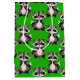 Cute little cartoon Raccoon Pattern Design on a Green background