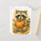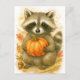 Bring a smile to your fall season with this adorable Thanksgiving postcard featuring a cute raccoon holding a pumpkin.