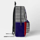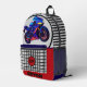 Rev up the school year with this bold and sporty motorbike backpack for boys, featuring a flashy red and navy-blue race bike, classic black and white gingham pattern, and room to personalise with your child’s name and monogram.