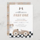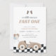 Vintage Race Car 1st Birthday Invitation for Boy Beige Race Car Fast One First Birthday Invite