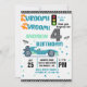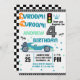 Rev up the excitement with this editable Race Car Birthday Invitation! Featuring the fun phrase “Vroom… Vrooom Start Your Engines For”, bold tire tracks, and a cool racing car in black, blue, and green, this invitation is perfect for boys ages 2 to 10. Easily customize the child’s name, age, date, time, and party details. Ideal for racing lovers and high-speed birthday themes!
