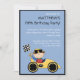 Personalise this racecar child's birthday party invitation. It's so easy to do, just change the details of the party and you're done! Features a little boy in a yellow race car waving a chequered flag. Makes a great keepsake of your child's birthday that you can keep for years to come.