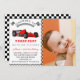 Start your engines! Celebrate your little racer's 3rd birthday with this adorable race car invitation. Features a bold red car, chequered flags, and space for your child’s photo. Fully customisable with name, date, and party details. Perfect for boys who love speed and fun! Great for race-themed birthday parties. Impress guests with a fun and modern design that sets the tone for a high-energy celebration. Printed on high-quality cardstock and available with matching accessories. Easy to personalise. Let the racing begin!