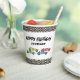 Boy racing car birthday party paper cups featuring watercolor race cars, chequered edges, the title "happy birthday", and the kids name.