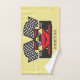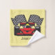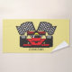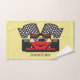 Race Car Design Bath Towel Set with customisable background colour and text on all three pieces.