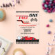Celebrate your little racer’s milestone with this fun and energetic Fast One race car 1st birthday invitation. Designed with a bold red race car, classic chequered flags, and playful racing details, this invitation is perfect for a boys’ first birthday party or car-themed celebration.