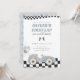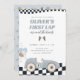 He is a fast one! Planning a boy vintage race car birthday party for a first birthday? Gather family and friends with a blue vintage race car birthday invite. Easily edit your blue first lap around the track birthday invite with all of the first birthday party details for the birthday boy turning one.