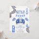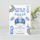 Birthday Party. Invite guests to a birthday party in style with car race. Watercolor racing track, gas station, race flag, blue racing car.