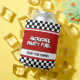 This car race themed birthday design is a thrilling and exciting design for kids who love cars and racing. The chequered flags along with bold typography and combination of red, white and black colours create this design visually appealing and engaging. This design can be a memorable and fun experience for your party guests.