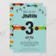 Race On Over 3rd Birthday Racecar Party invitations. Fun racing cars for a child's third birthday party.