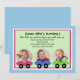Personalise our "Race Time" design for birthdays, baby showers and more. Change all words and even the numbers on the race cars.