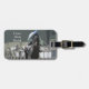 Racehorse With Jockey In Blue, Luggage Tag. Digital Art. Thoroughbred Steeplechase racehorse with jockey in blue cap, gallops towards the finish line at Shawan Downs, Maryland. Fully customisable. Edit the information to your needs.