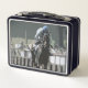 Racehorse With Jockey In Blue, Lunch Box. Digital Art. Thoroughbred Steeplechase racehorse with jockey in blue cap, gallops towards the finish line at Shawan Downs, Maryland. Fully customisable. Edit the name to your needs.