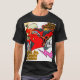 I give wanted to give this a 4 instead of a 5 because these Basic DARK T0shirts run unexpectedly SLIM or Narrow. Which is great if you do not have a potbelly, but I have a paunch. It isn't the shirt's fault that I've got a beer belly. The design and shirt itself is a quality cotton shirt. The color is more of a deep purple, but still a very pretty color. The Basic DARK T-shirts run a bit SLIMMER than the Basic Ts. The neck is a fraction narrower (or seems to be narrower) also. I'm a paunchy middle-aged woman and my neck is 12 inches (31cm) thick and the neckline fell about the same as in the photo of the man, and I had the desire to tug it a bit. So if you're a thick necked man or like loose shirts, be aware these are slimmer shirts. Once I get rid of my lockdown paunch it'll look great. The shirt washed well in cold water with no apparent bleeding. We don't have a dryer, so it hung dry. Did not shrink. Love the colors and the design. The design looks smaller on my shirt than it does on the model on-line. But still, it looks good on the shirt. The printing looks as it does on the model, just the size seems fractionally smaller. Washed garment in cold water, hung dry and design appeared unaffected.